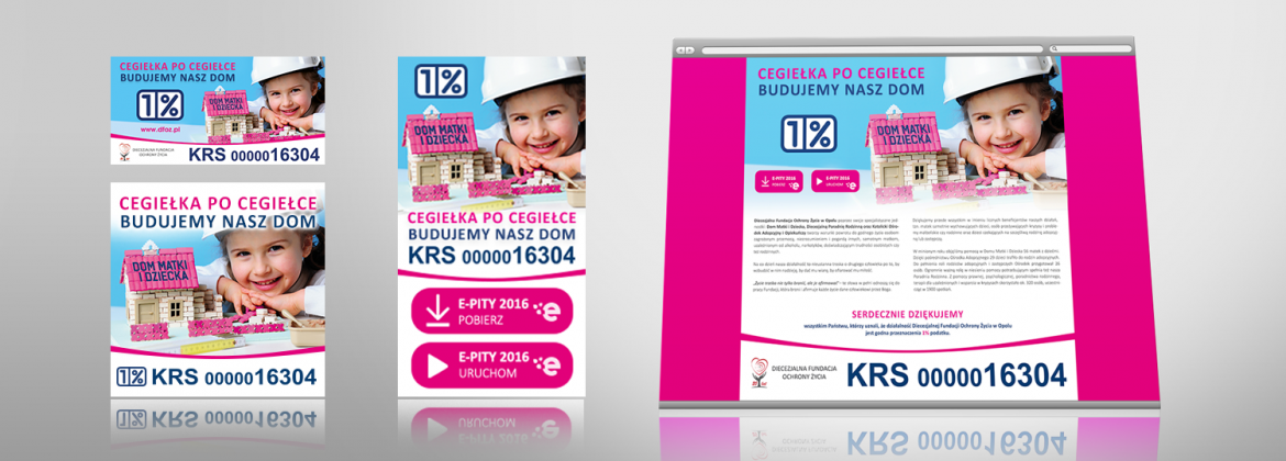Jako przyjaciele Fundacji rok rocznie przygotowujemy pro bono m.in. layout, kompleksową wizualizację kampanii, materiały promocyjne do druku i do sieci. Prowadzimy też stałe działania wspierające i promujące przekazywanie 1% na rzecz Organizacji Pożytku Publicznego.
