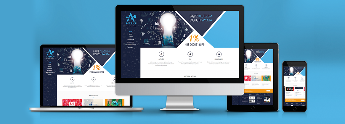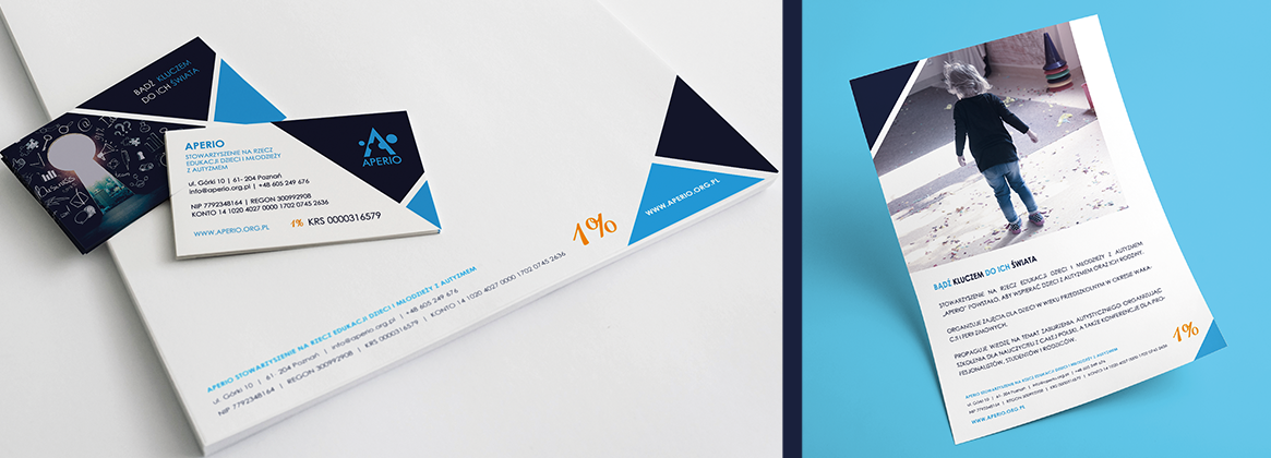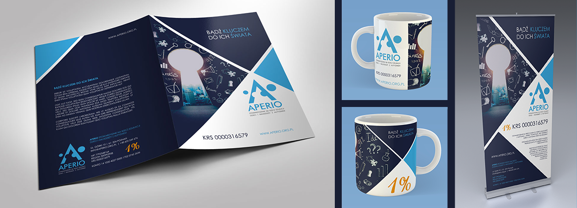 Dla Stowarzyszenia „APERIO" przygotowane zostały kompleksowe materiały graficzne i marketingowe – wizytówki, papier firmowy, szablon prezentacji, ulotki, folder, mailingi, tablice reklamowe, roll-up oraz stronę www, filmy wizerunkowe i intra.