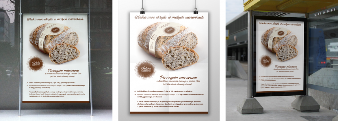 Chleb Sielski dzięki dużej zawartości nasion ma wyjątkowo ciekawą, sprężystą strukturę miękiszu, wyrazisty smak i aromat oraz wysoką zawartość kwasów tłuszczowych Omega 3.